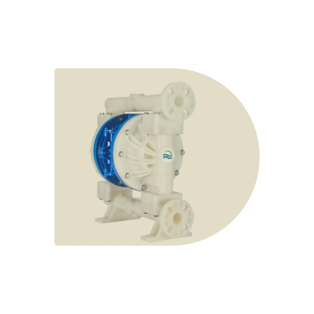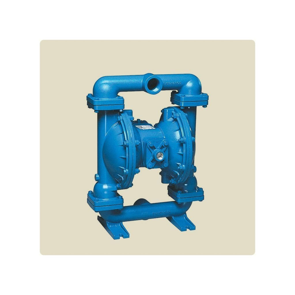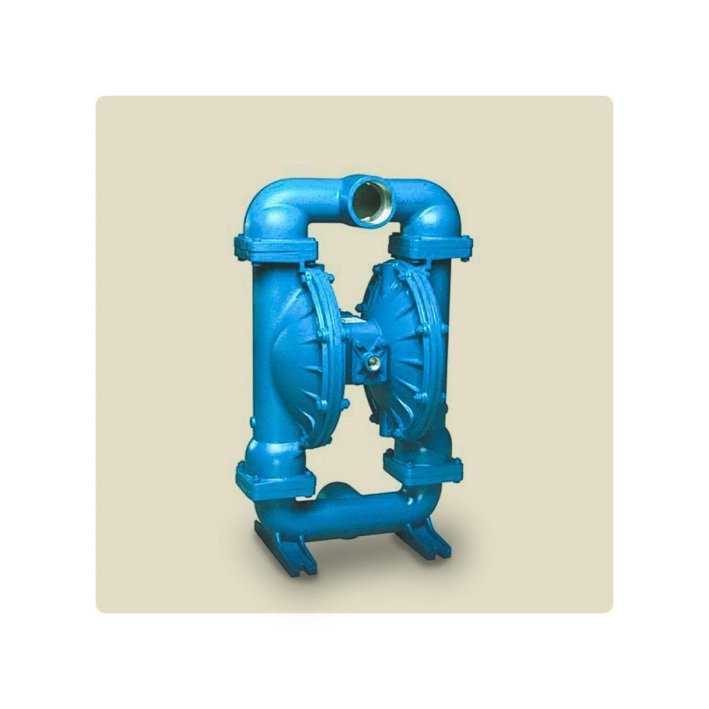 Bomba de doble diafragma metálica o no metálica con capacidad de manejar químicos corrosivos, diseñada para funcionar con aire comprimido o nitrógeno.