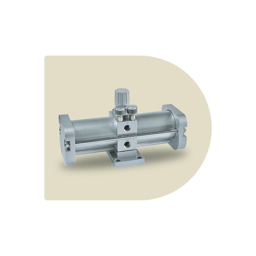 Aumenta la presión de aire de fábrica hasta el doble. El funcionamiento solo con aire no requiere fuente de alimentación, reduce la generación de calor y permite una fácil instalación.