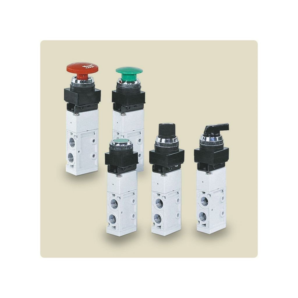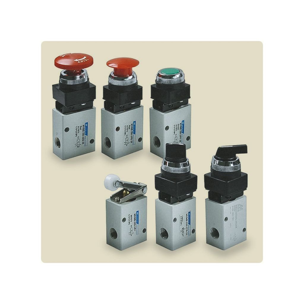 Las Mecánicas Mindman MVMB son altamente configurables en cuanto a sus vías, posiciones, accionamientos, con enclave y con retorno automático (3/2 y 5/2, normalmente abiertas y normalmente cerradas). Los Accionamientos pueden variar de botones, maneras, palancas, stop de hongo y finales de carrera.